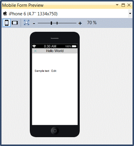 When developing for mobile platforms, you can preview the Display forms that you are developing by using the Mobile Form Preview pane. This lets you play around with the placement and size of the controls and see how the controls will appear on various mobile devices. The form and control properties related to placement and size are the properties that are supported for this preview pane.