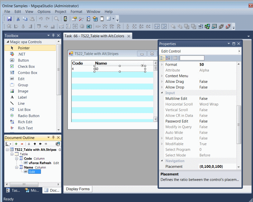 Magic xpa provides a built-in WYSIWYG form editor by which the user interface of both interactive and non-interactive tasks is created. Every control on the form can have its content and any other property fully data-bound by merely associating data elements to the controls.