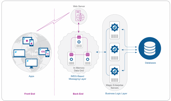 Magic xpa’s Studio and ready-made business application engine utilize and interface with all major frameworks, such as Java and .NET, all major databases, and all communication standards and protocols.