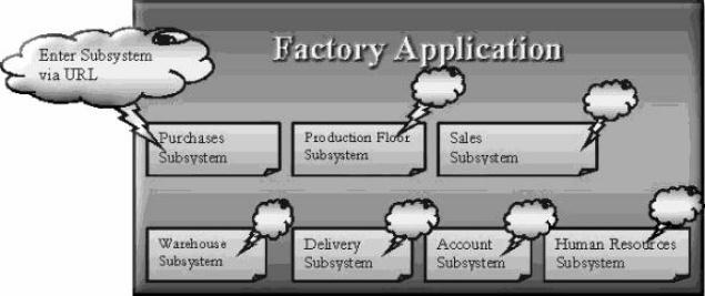 The figure below illustrates how a factory management application may be divided into subsystems.